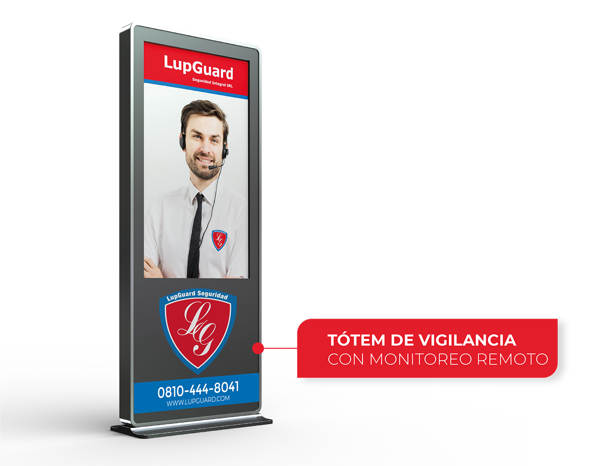El TÓTEM DE VIGILANCIA es un equipamiento de seguridad sumamente tecnológico que se coloca en el área que se desea monitorear y controla lo que sucede en dicha zona las 24 hs del día. Un operador está monitoreando en vivo y en directo, pero está ubicado en otro sitio y observa la situación a través de cámaras de seguridad. En caso de un hecho de inseguridad, el controlador se comunica por los parlantes y micrófonos del tótem y se activa un operativo de respuesta desde la Central de Monitoreo, enviando a las Fuerzas de Seguridad.
